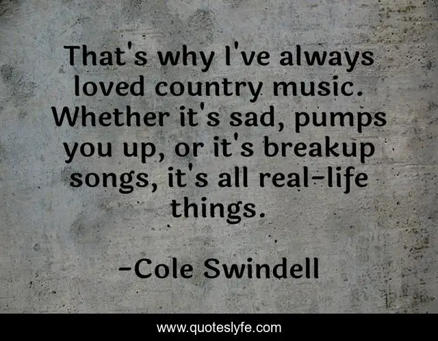 This page presents the quote "That's why I've always loved country music. Whether it's sad, pumps you up, or it's breakup songs, it's all real-life things.". Author of this quote is Cole Swindell. This quote is about music, why,.