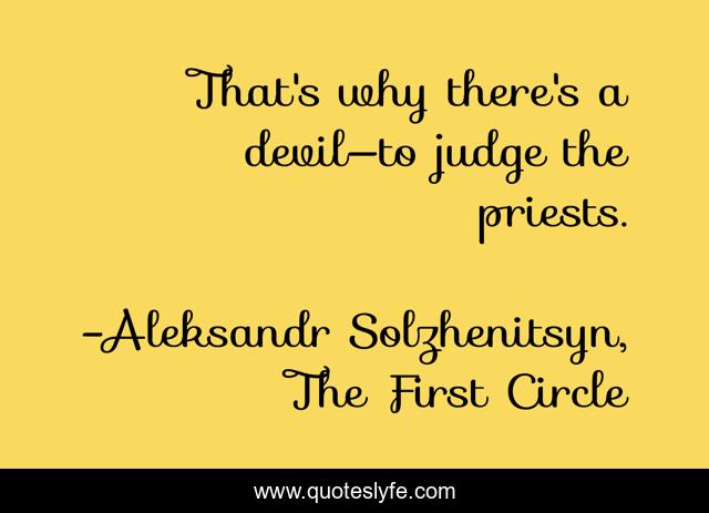 This page presents the quote "That's why there's a devil—to judge the priests.". Author of this quote is Aleksandr Solzhenitsyn, The First Circle. This quote is about priestcraft, devil, 1968, spiridon, chapter-24, hypocrites,.