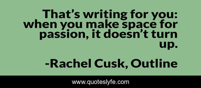 This page presents the quote "That’s writing for you: when you make space for passion, it doesn’t turn up.". Author of this quote is Rachel Cusk, Outline. This quote is about passion, writing,.