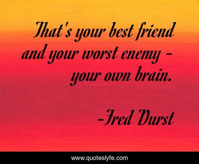 This page presents the quote "That's your best friend and your worst enemy - your own brain.". Author of this quote is Fred Durst. This quote is about best friend, friend, brain,.