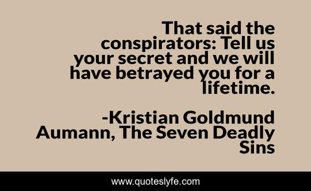 "Kristian Goldmund Aumann, The Seven Deadly Sins Quotes." Quoteslyfe.com, 2025. Fri. 05 Dec. 2025. <https://www.quoteslyfe.com/quote/That-said-the-conspirators-Tell-us-your-134665>.