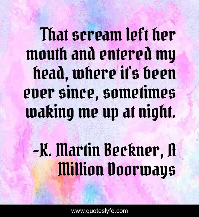 "K. Martin Beckner, A Million Doorways Quotes." Quoteslyfe.com, 2025. Mon. 08 Dec. 2025. <https://www.quoteslyfe.com/quote/That-scream-left-her-mouth-and-entered-45556>.