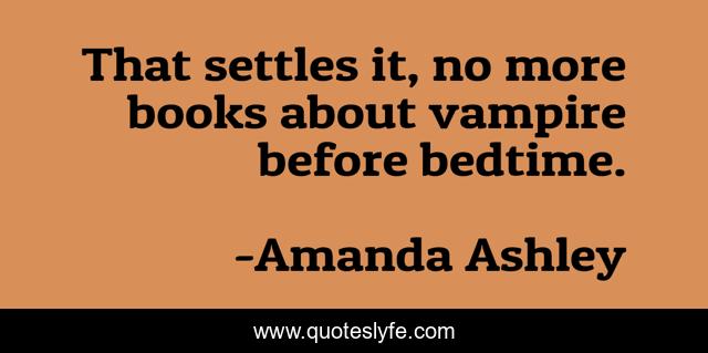 This page presents the quote "That settles it, no more books about vampire before bedtime.". Author of this quote is Amanda Ashley. This quote is about perfect, paranormal, dead, vampire, romance, supernatural,.