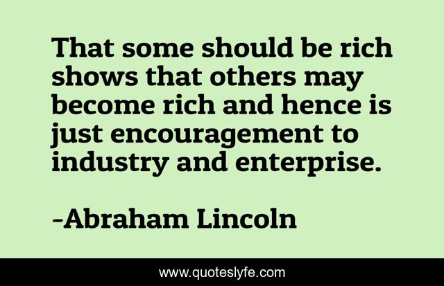 This page presents the quote "That some should be rich shows that others may become rich and hence is just encouragement to industry and enterprise.". Author of this quote is Abraham Lincoln. This quote is about models, role,.