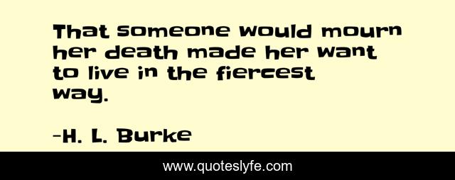 This page presents the quote "That someone would mourn her death made her want to live in the fiercest way.". Author of this quote is H. L. Burke. This quote is about fantasy-romance, inspirational-about-life,.