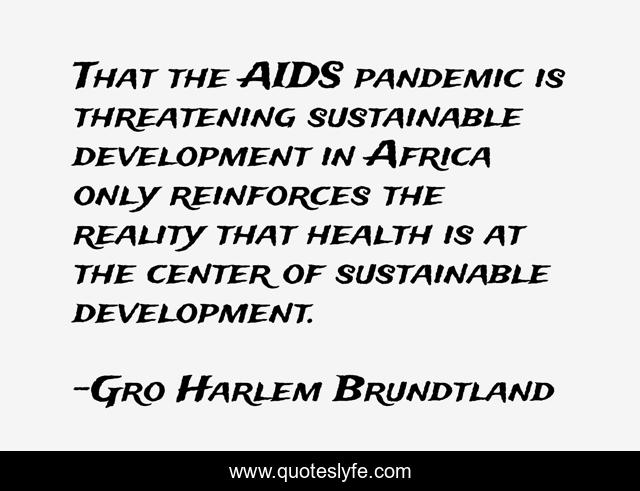 This page presents the quote "That the AIDS pandemic is threatening sustainable development in Africa only reinforces the reality that health is at the center of sustainable development.". Author of this quote is Gro Harlem Brundtland. This quote is about development, africa, reality,.