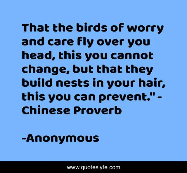 That the birds of worry and care fly over you head, this you cannot change, but that they build nests in your hair, this you can prevent." - Chinese Proverb