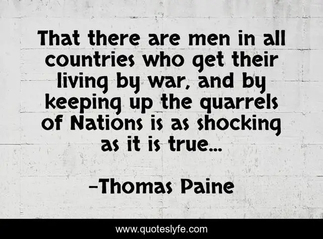 This page presents the quote "That there are men in all countries who get their living by war, and by keeping up the quarrels of Nations is as shocking as it is true...". Author of this quote is Thomas Paine. .