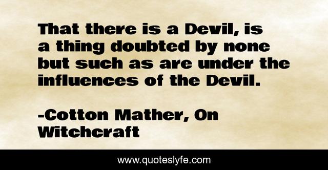 This page presents the quote "That there is a Devil, is a thing doubted by none but such as are under the influences of the Devil.". Author of this quote is Cotton Mather, On Witchcraft. This quote is about devil, satan, witchcraft,.