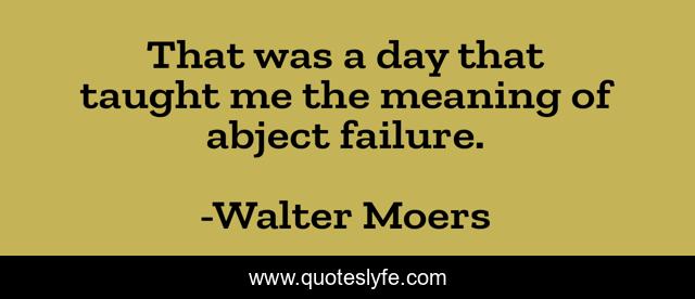 This page presents the quote "That was a day that taught me the meaning of abject failure.". Author of this quote is Walter Moers. This quote is about fantasy, fantasy-young-adult, fiction,.