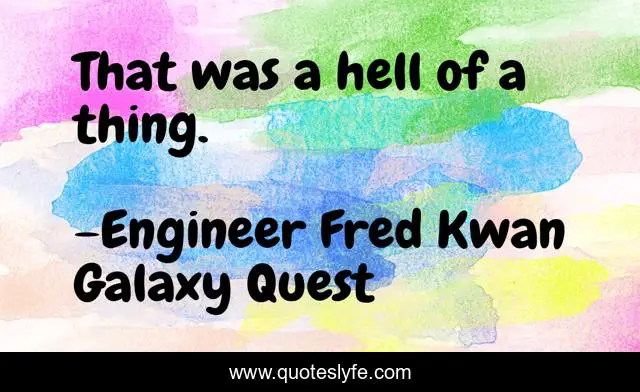 "Engineer Fred Kwan Galaxy Quest Quotes." Quoteslyfe.com, 2025. Sat. 06 Dec. 2025. <https://www.quoteslyfe.com/quote/That-was-a-hell-of-a-thing-219731>.