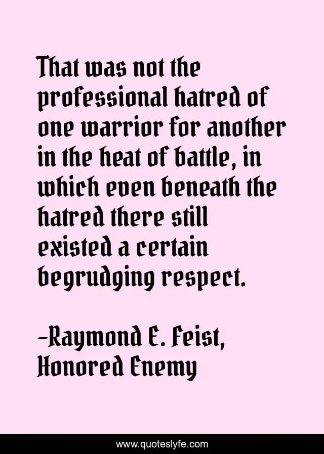 "Raymond E. Feist, Honored Enemy Quotes." Quoteslyfe.com, 2025. Fri. 05 Dec. 2025. <https://www.quoteslyfe.com/quote/That-was-not-the-professional-hatred-of-184992>.