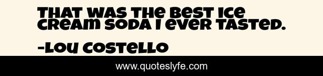 This page presents the quote "That was the best ice cream soda I ever tasted.". Author of this quote is Lou Costello. This quote is about ice cream, ice, cream,.