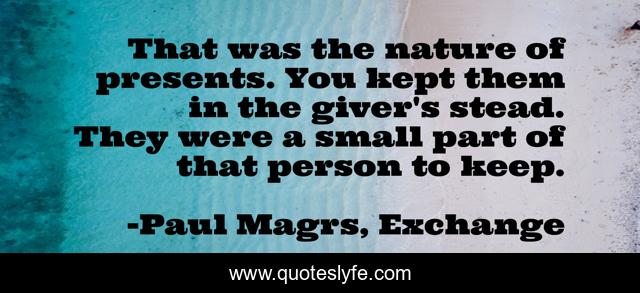 "Paul Magrs, Exchange Quotes." Quoteslyfe.com, 2025. Mon. 08 Dec. 2025. <https://www.quoteslyfe.com/quote/That-was-the-nature-of-presents-You-190146>.
