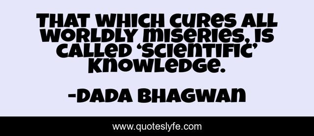 This page presents the quote "That which cures all worldly miseries, is called ‘Scientific’ Knowledge.". Author of this quote is Dada Bhagwan. This quote is about worldly-misery, spiritual, knowledge, miseries, misery, scientific-knowledge,.
