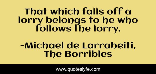 "Michael de Larrabeiti, The Borribles Quotes." Quoteslyfe.com, 2025. Sat. 06 Dec. 2025. <https://www.quoteslyfe.com/quote/That-which-falls-off-a-lorry-belongs-258011>.