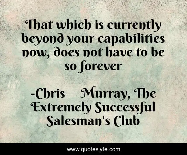 "Chris Murray, The Extremely Successful Salesman's Club Quotes." Quoteslyfe.com, 2025. Fri. 05 Dec. 2025. <https://www.quoteslyfe.com/quote/That-which-is-currently-beyond-your-capabilities-109666>.