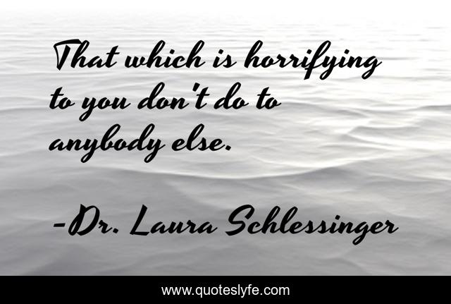 This page presents the quote "That which is horrifying to you don't do to anybody else.". Author of this quote is Dr. Laura Schlessinger. This quote is about day, one,.
