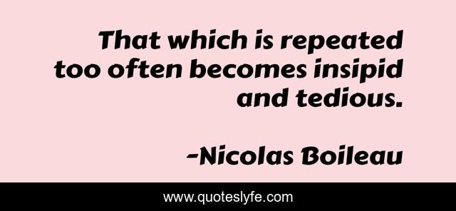 This page presents the quote "That which is repeated too often becomes insipid and tedious.". Author of this quote is Nicolas Boileau. .