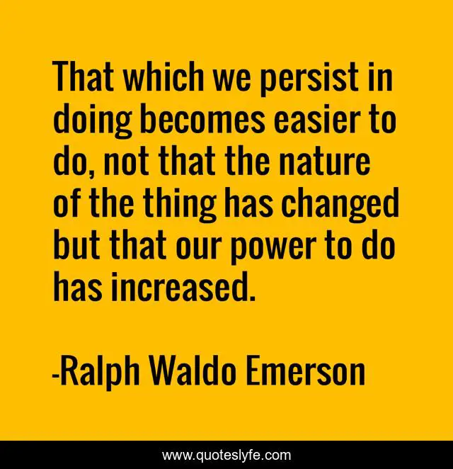 This page presents the quote "That which we persist in doing becomes easier to do, not that the nature of the thing has changed but that our power to do has increased.". Author of this quote is Ralph Waldo Emerson. This quote is about enthusiasm, inspirational,.