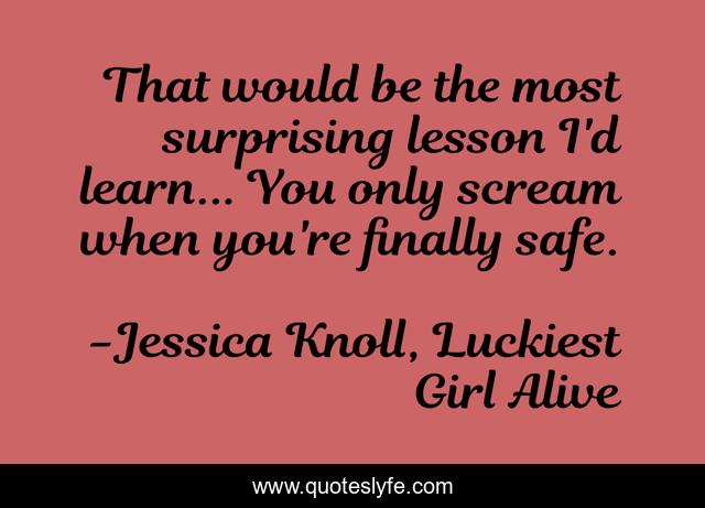 "Jessica Knoll, Luckiest Girl Alive Quotes." Quoteslyfe.com, 2025. Fri. 05 Dec. 2025. <https://www.quoteslyfe.com/quote/That-would-be-the-most-surprising-lesson-251939>.
