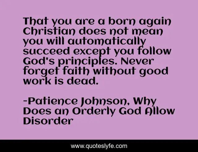 "Patience Johnson, Why Does an Orderly God Allow Disorder Quotes." Quoteslyfe.com, 2025. Mon. 08 Dec. 2025. <https://www.quoteslyfe.com/quote/That-you-are-a-born-again-Christian-47871>.