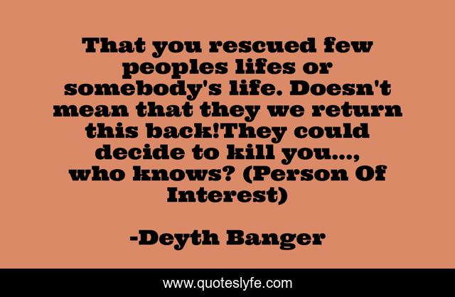 "Deyth Banger Quotes." Quoteslyfe.com, 2025. Fri. 05 Dec. 2025. <https://www.quoteslyfe.com/quote/That-you-rescued-few-peoples-lifes-or-71561>.