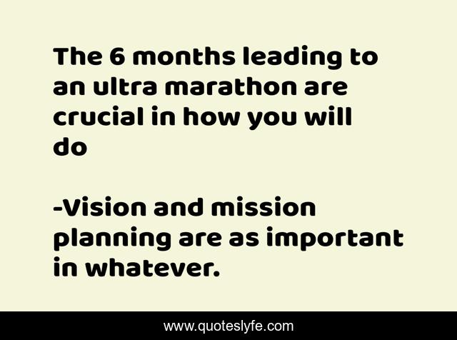 This page presents the quote "The 6 months leading to an ultra marathon are crucial in how you will do". Author of this quote is Vision and mission planning are as important in whatever.. .