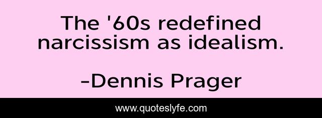 This page presents the quote "The '60s redefined narcissism as idealism.". Author of this quote is Dennis Prager. This quote is about culture, politics,.
