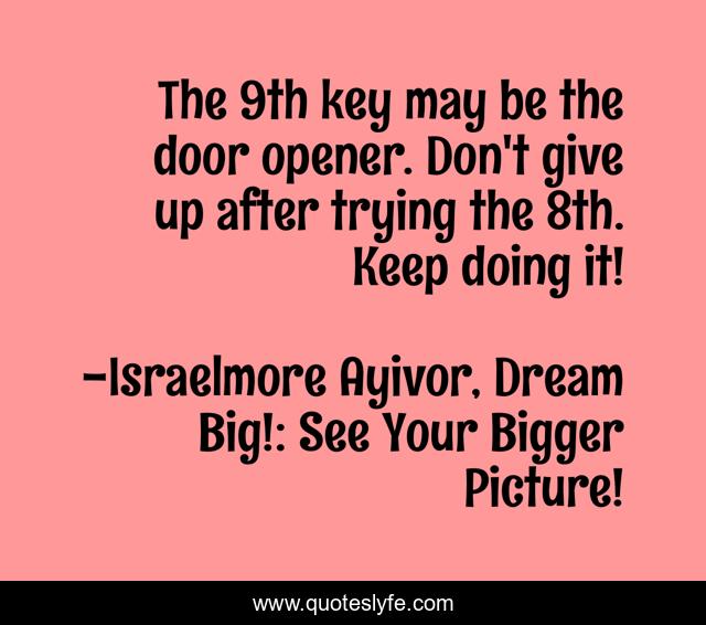 "Israelmore Ayivor, Dream Big!: See Your Bigger Picture! Quotes." Quoteslyfe.com, 2025. Mon. 08 Dec. 2025. <https://www.quoteslyfe.com/quote/The-9th-key-may-be-the-door-129463>.