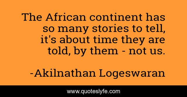 This page presents the quote "The African continent has so many stories to tell, it's about time they are told, by them - not us.". Author of this quote is Akilnathan Logeswaran. This quote is about stories-of-people, empowerment, literature, african-authors, african-literature, people, continent-of-africa, africa, stories-life,.