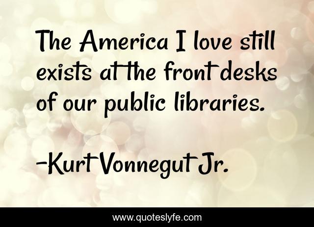 This page presents the quote "The America I love still exists at the front desks of our public libraries.". Author of this quote is Kurt Vonnegut Jr.. .