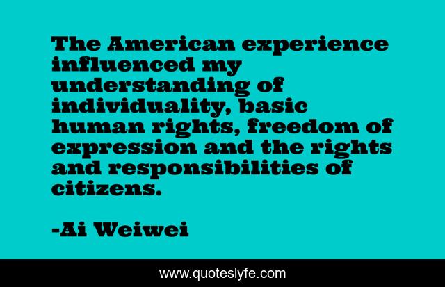 This page presents the quote "The American experience influenced my understanding of individuality, basic human rights, freedom of expression and the rights and responsibilities of citizens.". Author of this quote is Ai Weiwei. This quote is about freedom, american,.