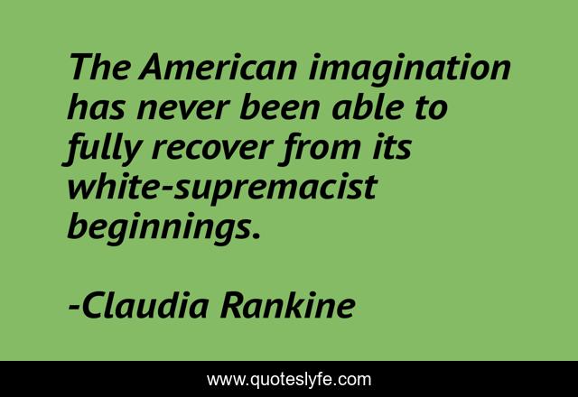 This page presents the quote "The American imagination has never been able to fully recover from its white-supremacist beginnings.". Author of this quote is Claudia Rankine. This quote is about american, beginnings,.