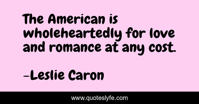 This page presents the quote "The American is wholeheartedly for love and romance at any cost.". Author of this quote is Leslie Caron. This quote is about american, cost, love, affection,.