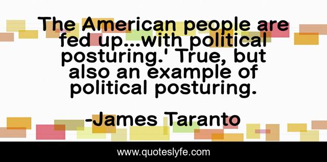 This page presents the quote "The American people are fed up...with political posturing.' True, but also an example of political posturing.". Author of this quote is James Taranto. This quote is about hypocrisy, 2011-us-debt-ceiling-crisis, twitter, barack-obama, posturing, politics, 2011,.