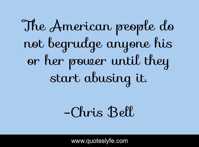 This page presents the quote "The American people do not begrudge anyone his or her power until they start abusing it.". Author of this quote is Chris Bell. This quote is about start, american, people,.