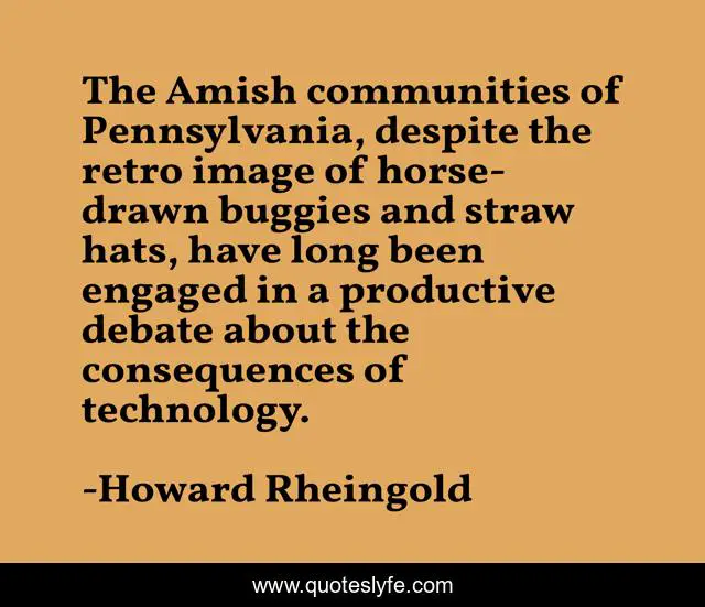 This page presents the quote "The Amish communities of Pennsylvania, despite the retro image of horse-drawn buggies and straw hats, have long been engaged in a productive debate about the consequences of technology.". Author of this quote is Howard Rheingold. This quote is about long, debate, consequences,.