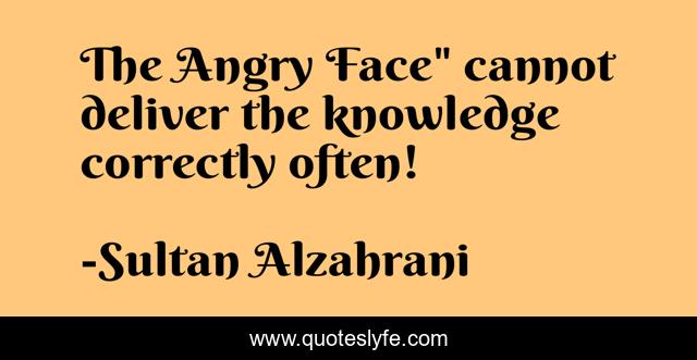 This page presents the quote "The Angry Face" cannot deliver the knowledge correctly often!". Author of this quote is Sultan Alzahrani. This quote is about knowledge, students, teachers, student, teaching, teacher,.
