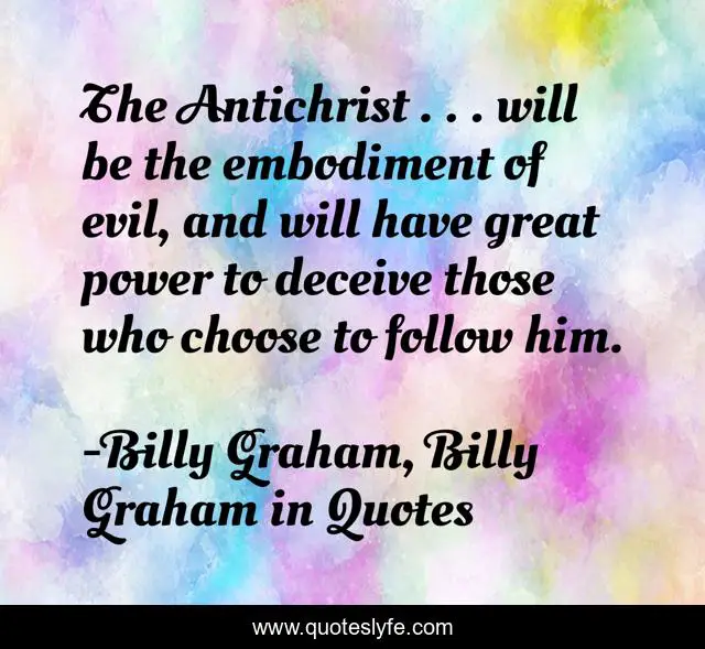 "Billy Graham, Billy Graham in Quotes Quotes." Quoteslyfe.com, 2025. Sun. 07 Dec. 2025. <https://www.quoteslyfe.com/quote/The-Antichrist-will-be-the-embodiment-of-152800>.