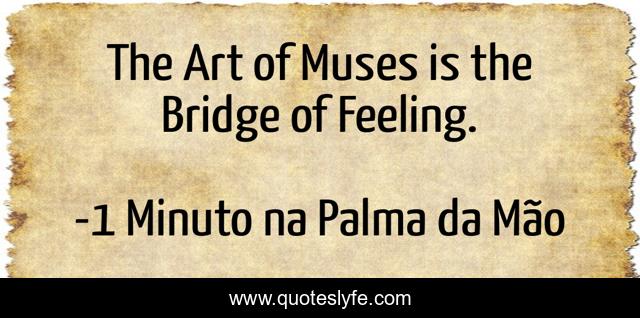 This page presents the quote "The Art of Muses is the Bridge of Feeling.". Author of this quote is 1 Minuto na Palma da Mão. This quote is about reflexão, letra, life, música, art, reflection, song, vida, existência,.