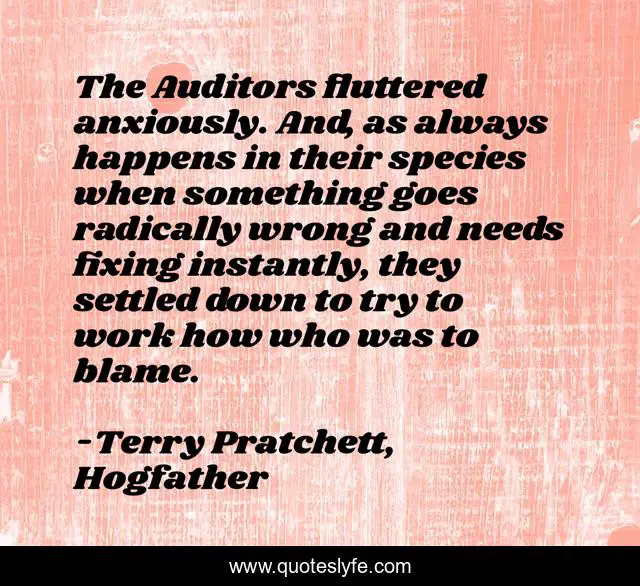 "Terry Pratchett, Hogfather Quotes." Quoteslyfe.com, 2025. Sun. 07 Dec. 2025. <https://www.quoteslyfe.com/quote/The-Auditors-fluttered-anxiously-And-as-always-280120>.