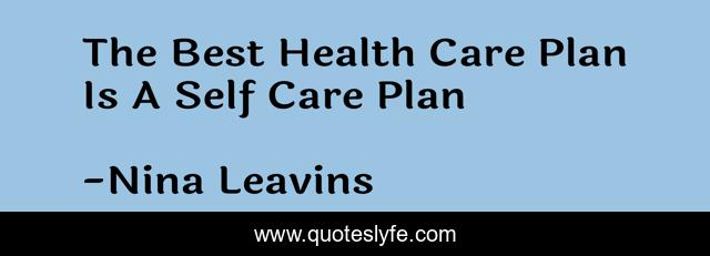 This page presents the quote "The Best Health Care Plan Is A Self Care Plan". Author of this quote is Nina Leavins. This quote is about nutrition, high-performance, rehabilitation, health, self-improvement, fitness, sleep, self-care,.