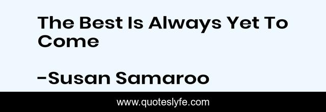"Susan Samaroo Quotes." Quoteslyfe.com, 2025. Mon. 08 Dec. 2025. <https://www.quoteslyfe.com/quote/The-Best-Is-Always-Yet-To-Come-49409>.