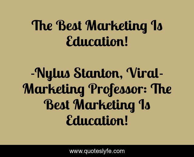 Check all other quotes by Nylus Stanton, Viral-Marketing Professor: The Best Marketing Is Education!