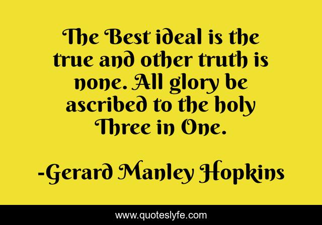 This page presents the quote "The Best ideal is the true and other truth is none. All glory be ascribed to the holy Three in One.". Author of this quote is Gerard Manley Hopkins. This quote is about catholicism, trinity, religion,.