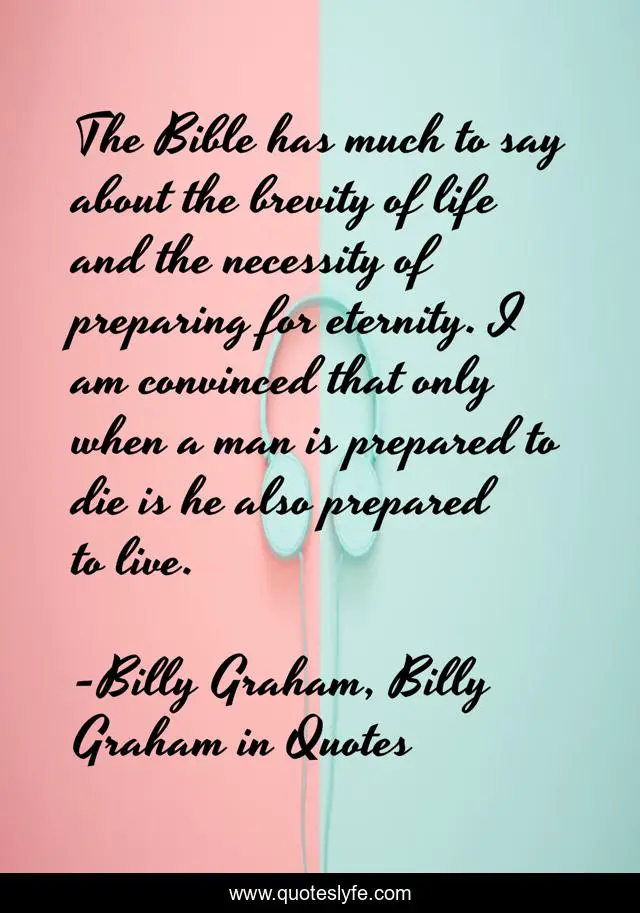 This page presents the quote "The Bible has much to say about the brevity of life and the necessity of preparing for eternity. I am convinced that only when a man is prepared to die is he also prepared to live.". Author of this quote is Billy Graham, Billy Graham in Quotes. This quote is about life, billy-graham,.