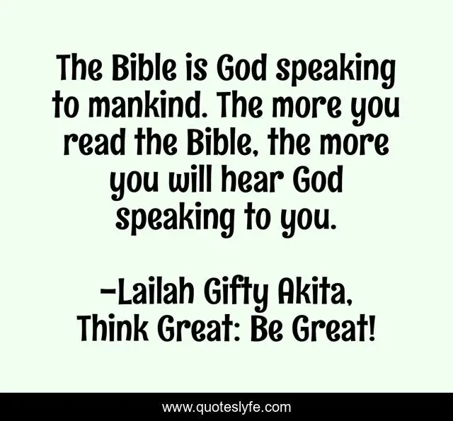 "Lailah Gifty Akita, Think Great: Be Great! Quotes." Quoteslyfe.com, 2025. Tue. 09 Dec. 2025. <https://www.quoteslyfe.com/quote/The-Bible-is-God-speaking-to-mankind-121379>.