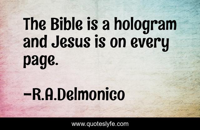 This page presents the quote "The Bible is a hologram and Jesus is on every page.". Author of this quote is R.A.Delmonico. .