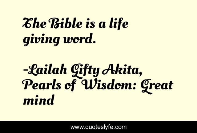 "Lailah Gifty Akita, Pearls of Wisdom: Great mind Quotes." Quoteslyfe.com, 2025. Sat. 06 Dec. 2025. <https://www.quoteslyfe.com/quote/The-Bible-is-a-life-giving-word-125391>.